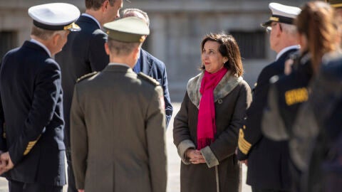 La titular de Defensa evita la polémica con el líder del PP, Alberto Núñez Feijóo, sobre su petición de viajar a Letonia para visitar las tropas españolas porque "las fuerzas armadas son de todos" y asegura el dirigente popular no ha hablado con ella sobre este asunto.