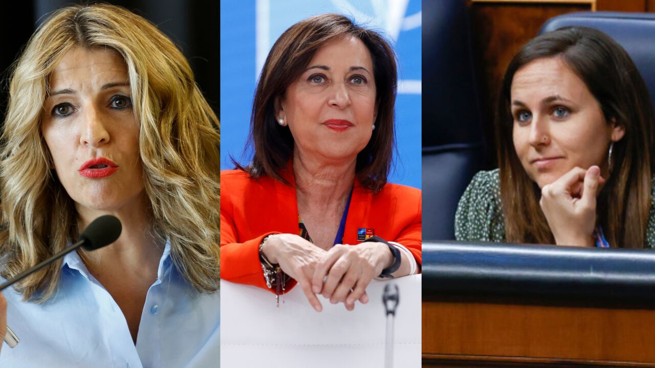 La ministra de Defensa, Margarita Robles, la titular de Derechos Sociales, Ione Belarra y la vicepresidenta segunda del Gobierno, Yolanda Díaz, han protagonizado un nuevo enfrentamiento a cuenta del aumento del gasto en Defensa.