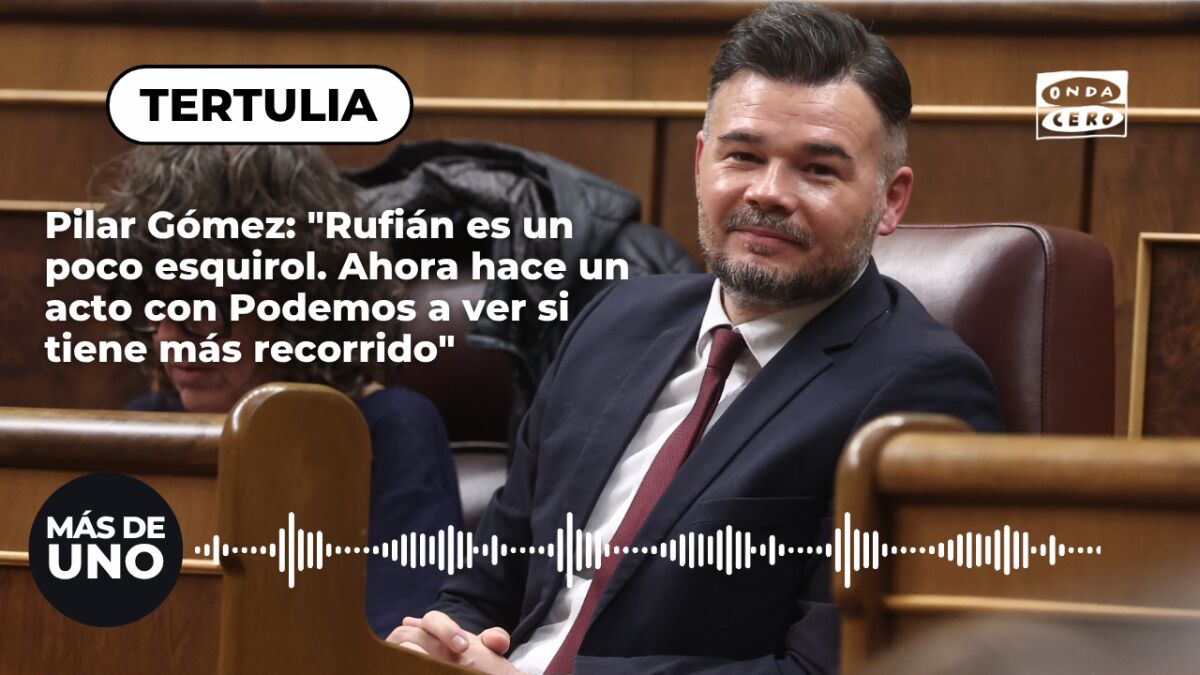 Sobre la reunión de esta tarde, la periodista Pilar Gómez ha comentado en la tertulia de Más de uno que Rufián es un poco esquirol. "Ahora hace un acto con Podemos a ver si tiene más recorrido", ha asegurado.