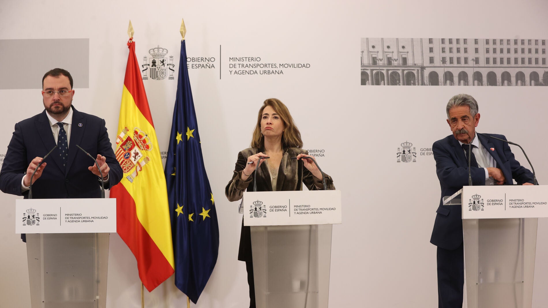 Así lo ha anunciado la ministra de Transportes, Raquel Sánchez, tras reunirse este lunes con los presidentes de Asturias y Cantabria, Adrián Barbón y Miguel Ángel Revilla, respectivamente, para explicar cómo está la situación tras los errores en las medidas de los trenes contratados, que provocarán una demora en su fabricación de dos años.