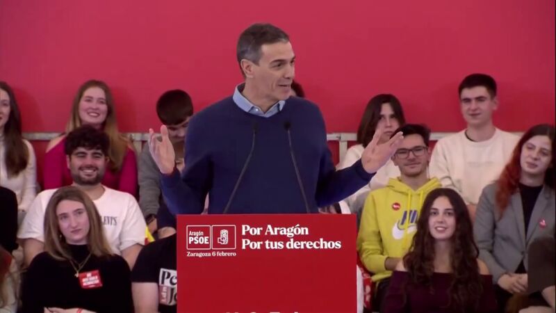 La reacción del PP llega después de que Pedro Sánchez cargara contra Feijóo en el acto de cierre de campaña de Aragón, donde ha recordado varios lapsus del líder popular y se ha mofado de un error cometido durante una visita a una empresa en Aragón. Sánchez ha comentado entre risas cómo Feijóo pronunció de forma incorrecta el nombre de la compañía en varias ocasiones. "Pero imaginaos, ahí los trabajadores todos sentados, el equipo de campaña y él ahí diciendo en lugar de Fribín, Brifín... ocho veces". "El que no fue presidente porque no quiso no mete más la pata porque no puede", ha rematado.