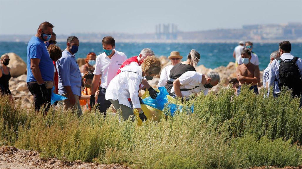 Acompañada por el alcalde de Alicante, Luis Barcala; la concejal de Turismo y Playas, Maricarmen Sánchez; el presidente de Cruz Roja en la provincia, Francisco Galvañ, y de Federico García (SEO/BirdLife), Óscar Martín (Ecoembes) y Julio César Marcos (Oceánidas), asimismo la Reina ha conversado con varios buzos voluntarios que han limpiado el fondo marino a unos 60 metros de la orilla.