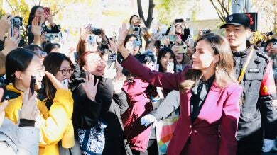 La reina Letizia se ha dado un baño de masas en la visita oficial de los Reyes a China, donde ha protagonizado un acto de homenaje a la lengua española y sus profesores.