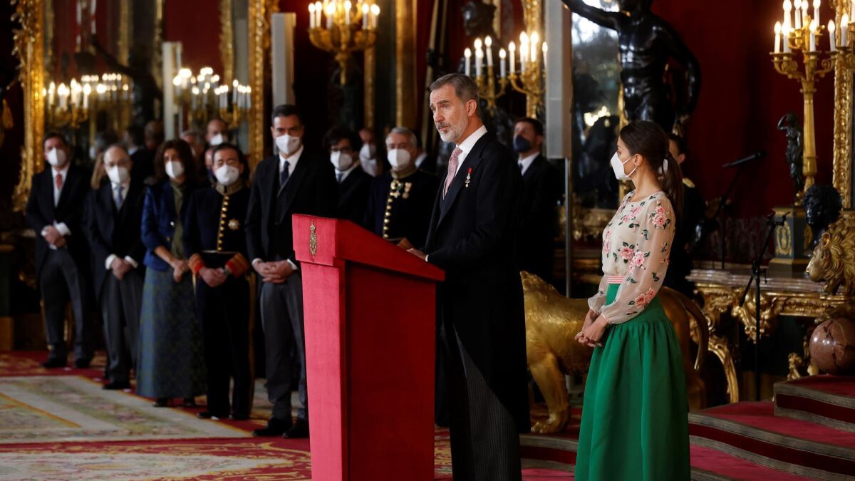 El Rey ha estado acompañado por la reina Letizia, en una recepción a la que han asistido unos 130 embajadores, encargados de negocios y de organismos internacionales, de los que sólo 40 han estado en el Salón del Trono por las restricciones de aforo por la pandemia.