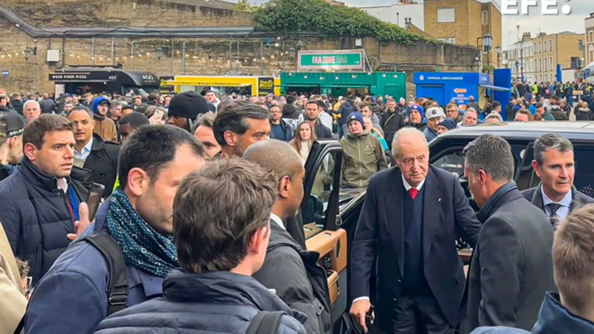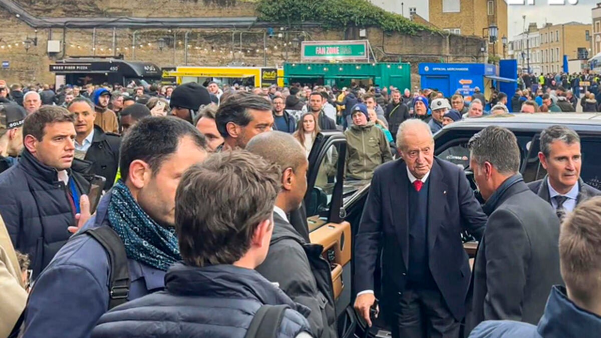 El emérito, cuya visita privada a Londres ha despertado gran atención mediática, llegó a las inmediaciones del estadio en un vehículo todo terreno negro tras el autobús del Real Madrid y a la vez que el presidente del club madridista, Florentino Pérez, con quien no se le vio saludarse.