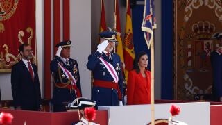 Poco antes de las doce del mediodía han llegado Felipe VI y la reina Letizia, a los que han acompañado a la tribuna Robles, el jefe del Estado Mayor de la Defensa, el almirante general Teodoro Esteban López Calderón; el presidente del Principado, Adrián Barbón, y el alcalde de Oviedo, Alberto Canteli.