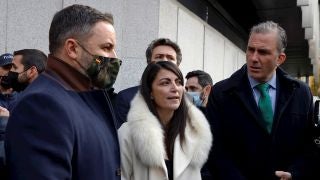 "Estamos en la calle junto a los más leales y más esforzados servidores de España", ha señalado el presidente de Vox en declaraciones a los medios.