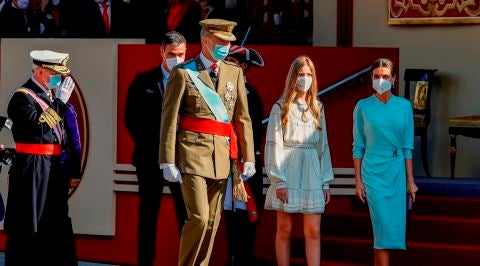 Los Reyes no han dado la mano a los cargos políticos que han asistido al desfile por las restricciones y todos los asistentes han