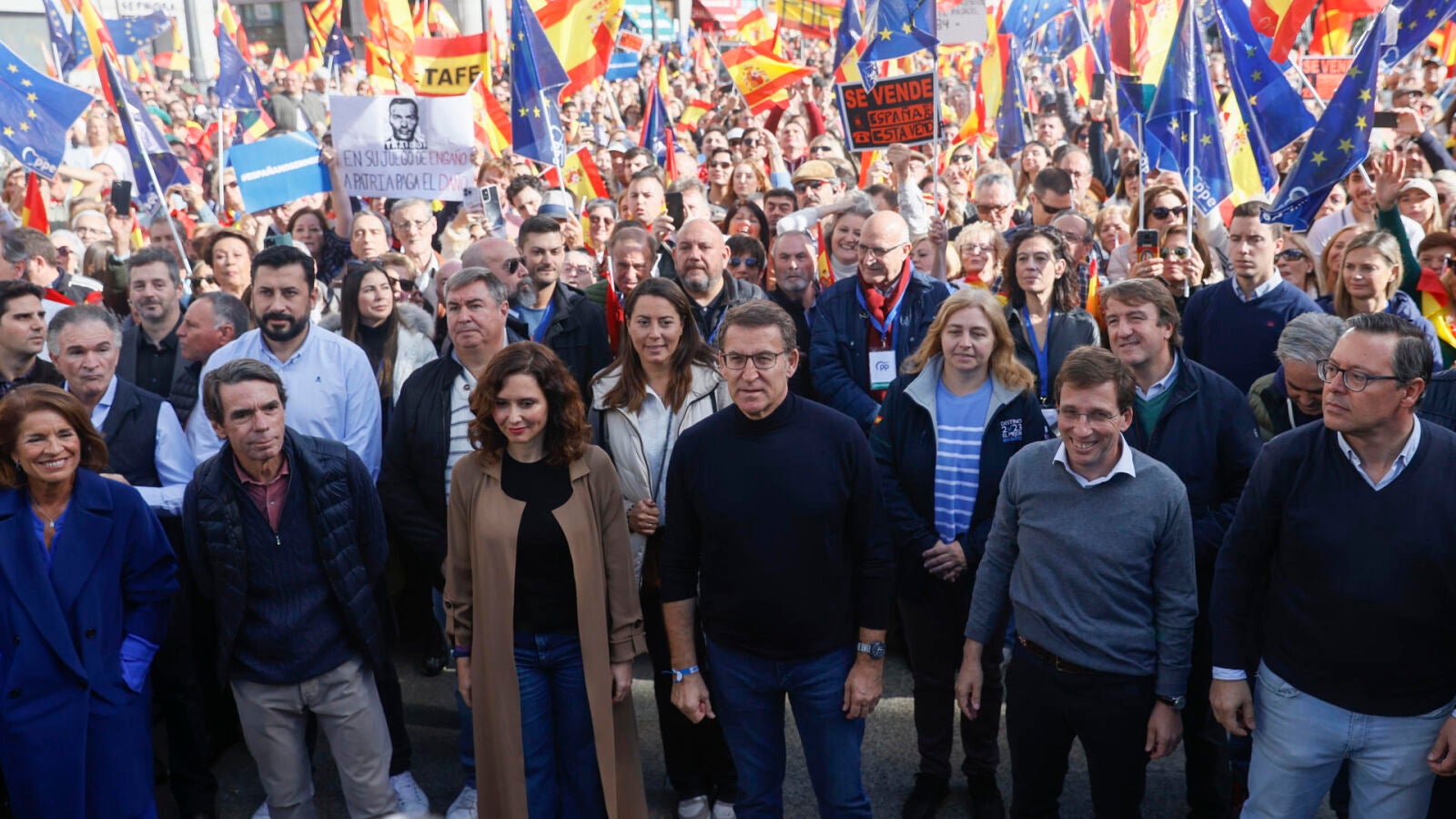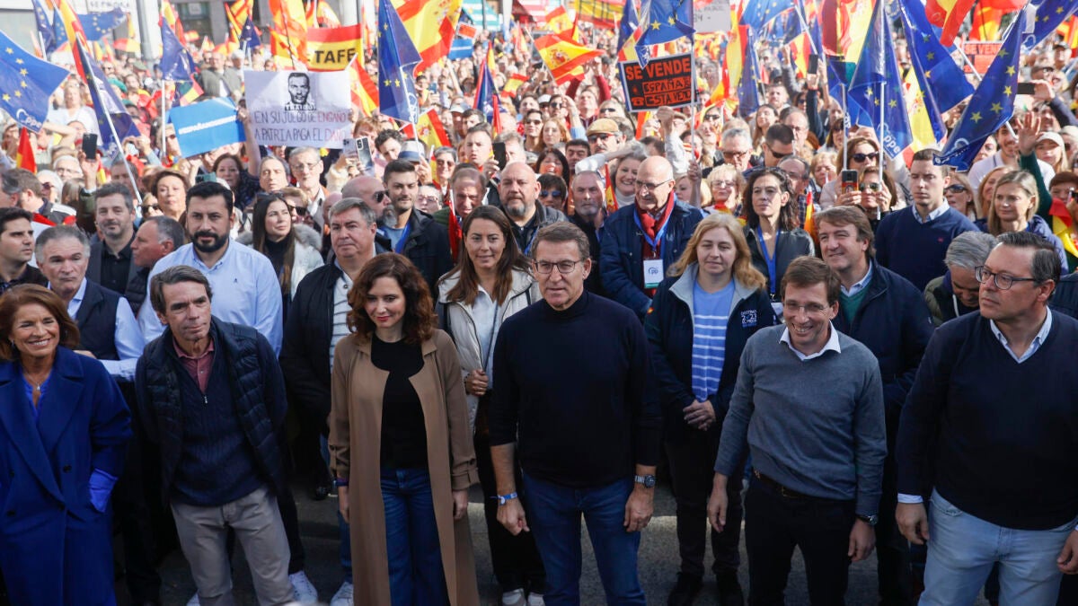 Feijóo irá a la manifestación de este sábado con buena parte de su núcleo duro, ya que también se sumarán a esta protesta la secretaria general, Cuca Gamarra; el coordinador general, Elías Bendodo; la portavoz del PP en el Parlamento Europeo, Dolors Montserrat; y los vicesecretarios Esteban González Pons, Carmen Fúnez, Juan Bravo, Borja Sémper y Carmen Navarro.