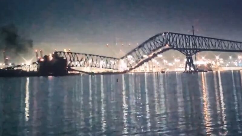 El momento de la colisión y la caída del puente en Baltimore