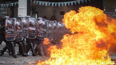 En medio del caos, un grupo de alborotadores fabricaron un improvisado cóctel molotov y lo lanzaron contra un camión policial propulsor de agua a presión. Al menos estalló otro explosivo de este tipo frente al Congreso. Así fue como se llenaron las calles aledañas de policías motorizados que disparaban balas de goma y gas pimienta a quienes se encontraban a su paso.