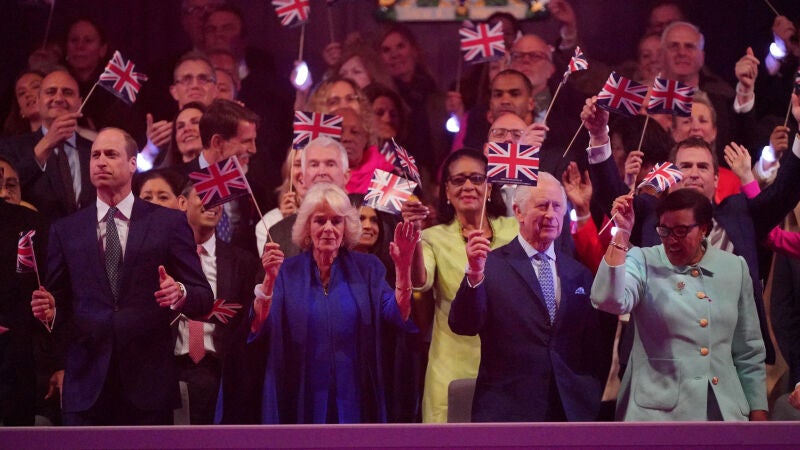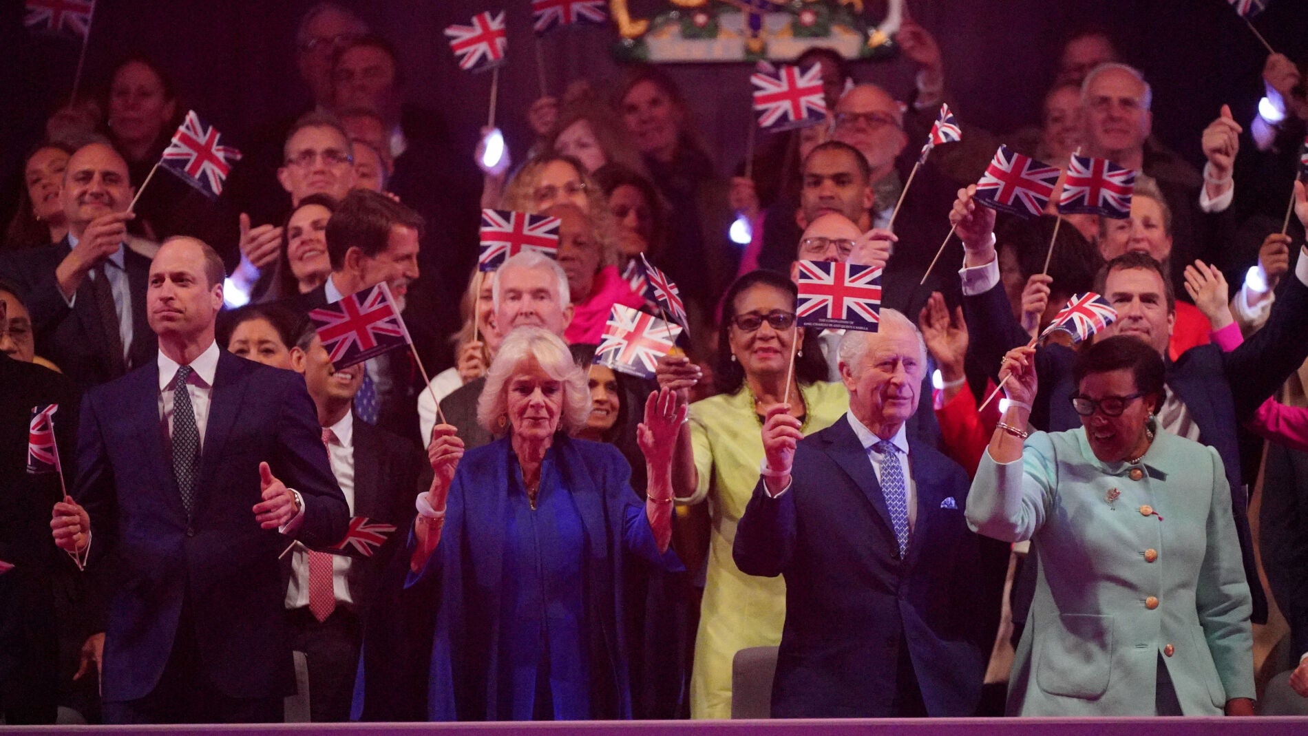 El espectáculo fue organizado por la BBC con un escenario en forma de 'Union Jack', la bandera de Reino Unido, y presidido en el palco de honor por los reyes Carlos III y Camila, acompañados por el heredero a la corona, el príncipe Guillermo, así como otros miembros de la realeza británica.