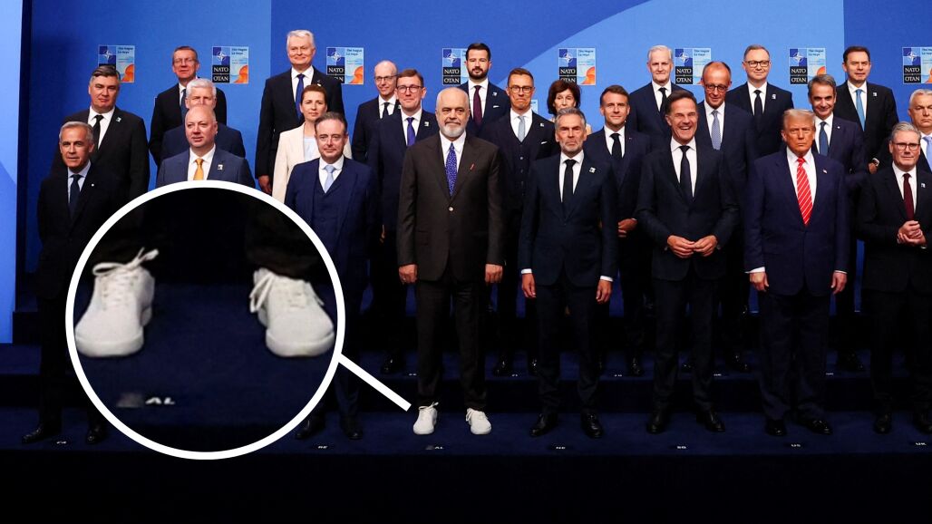 Son los pies de Edi Rama, primer ministro de Albania, quien se ha convertido sin querer en una de las sensaciones de la icónica foto de familia. Luce unas llamativas zapatillas blancas combinadas con un traje oscuro, rompiendo con la uniformidad formal del resto de mandatarios. Es un simple detalle, pero está claro que contrasta con el formal calzado elegante del resto de líderes, y por eso no pasó desapercibido en medios y redes sociales.