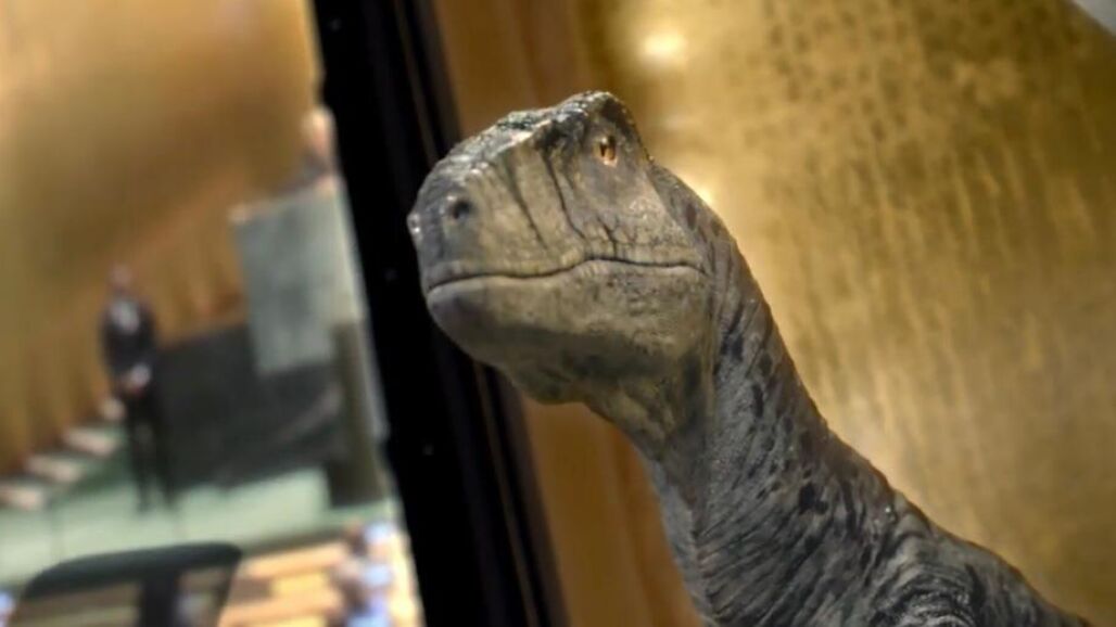 La Asamblea General de la ONU ha sido invadida por Frankie, un dinosaurio que se ha convertido en el protagonista la nueva campaña del organismo internacional para advertir del peligro de extinción del cambio climático.