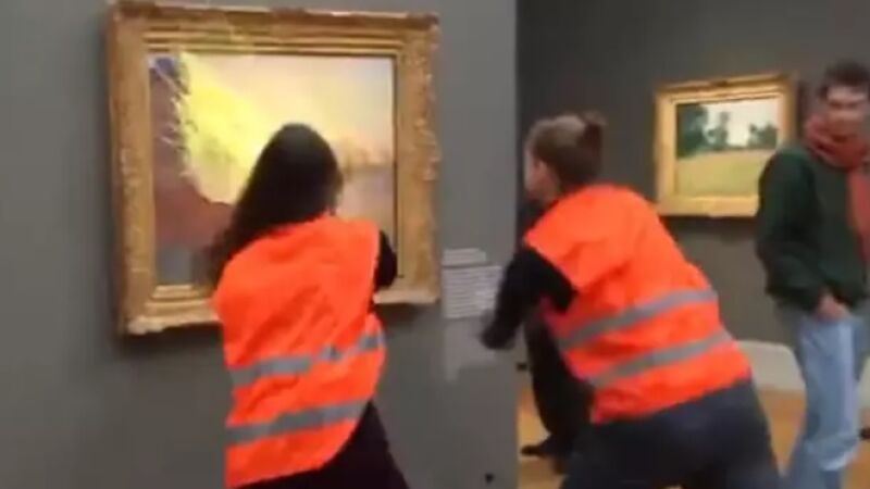 La obra, perteneciente a la serie Les Meules (Los Pajares) de Monet (1889-1891), fue rociada con una masa viscosa, según ha explicado la portavoz del museo, Carolin Stranz. El grupo responsable ha asegurado que se trata de puré de patata. El personal especializado trabaja ya para examinar posibles daños en el cuadro.