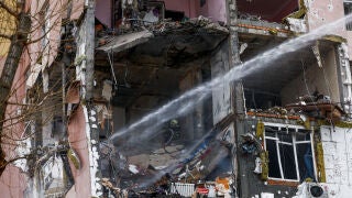 El fallecido ha sido identificado como un hombre de 71 años que ha terminado sepultado bajo los escombros tras el impacto de un misil ruso en el barrio de Dnipro. Su esposa, de 70 años, se encuentra en estado grave en el hospital. La Policía continúa trabajando en los siete barrios alcanzados de la capital con un dispositivo de más de 200 agentes dedicados exclusivamente a la retirada de escombros.