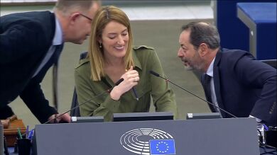 Al término de esa intervención y cuando la presidenta del Parlamento, Roberta Metsola, iba a dar la palabra a los portavoces de los grupos, se han escuchado de forma repetida esos ladridos.