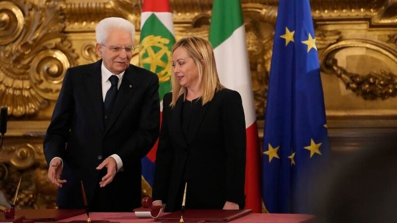 La líder de Hermanos de Italia, Giorgia Meloni, ha jurado este sábado su cargo como nueva primera ministra del país frente al presidente Sergio Mattarella en el principio de la toma de posesión de su nuevo gobierno, celebrada en el palacio del Quirinal.