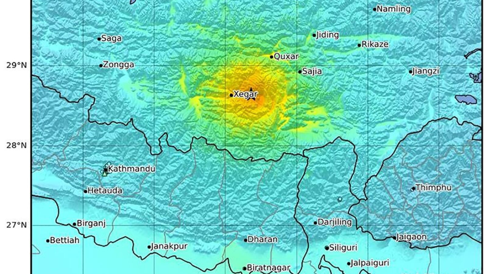 El epicentro se situó a unos 85 kilómetros del monte Everest, ubicado justo en la frontera entre China y Nepal, el cual ha sido cerrado al público hasta nuevo aviso para garantizar la seguridad de visitantes y personal.