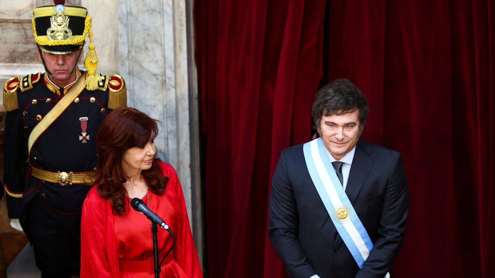 Entre gritos de "¡Argentina, Argentina!", Milei y su flamante vicepresidenta, Victoria Villarruel, han proclamado su lealtad al Estado argentino en presencia de sus predecesores, Alberto Fernández y Cristina Kirchner.