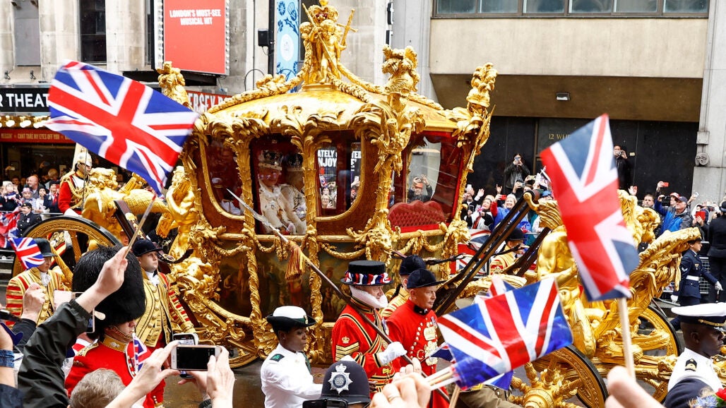 La jornada se ha cerrado con un saludo de la familia real con algunas excepciones desde el balcón del Palacio de Buckingham. Carlos y Camila continuaban llevando su corona oficial y su manto al paso de la culminación de la ceremonia: el sobrevuelo de helicópteros de combate y, de remate, del escuadrón acrobático de las Flechas Rojas, aunque en un formato reducido por la lluvia que ha dominado durante la mayor parte de los eventos.