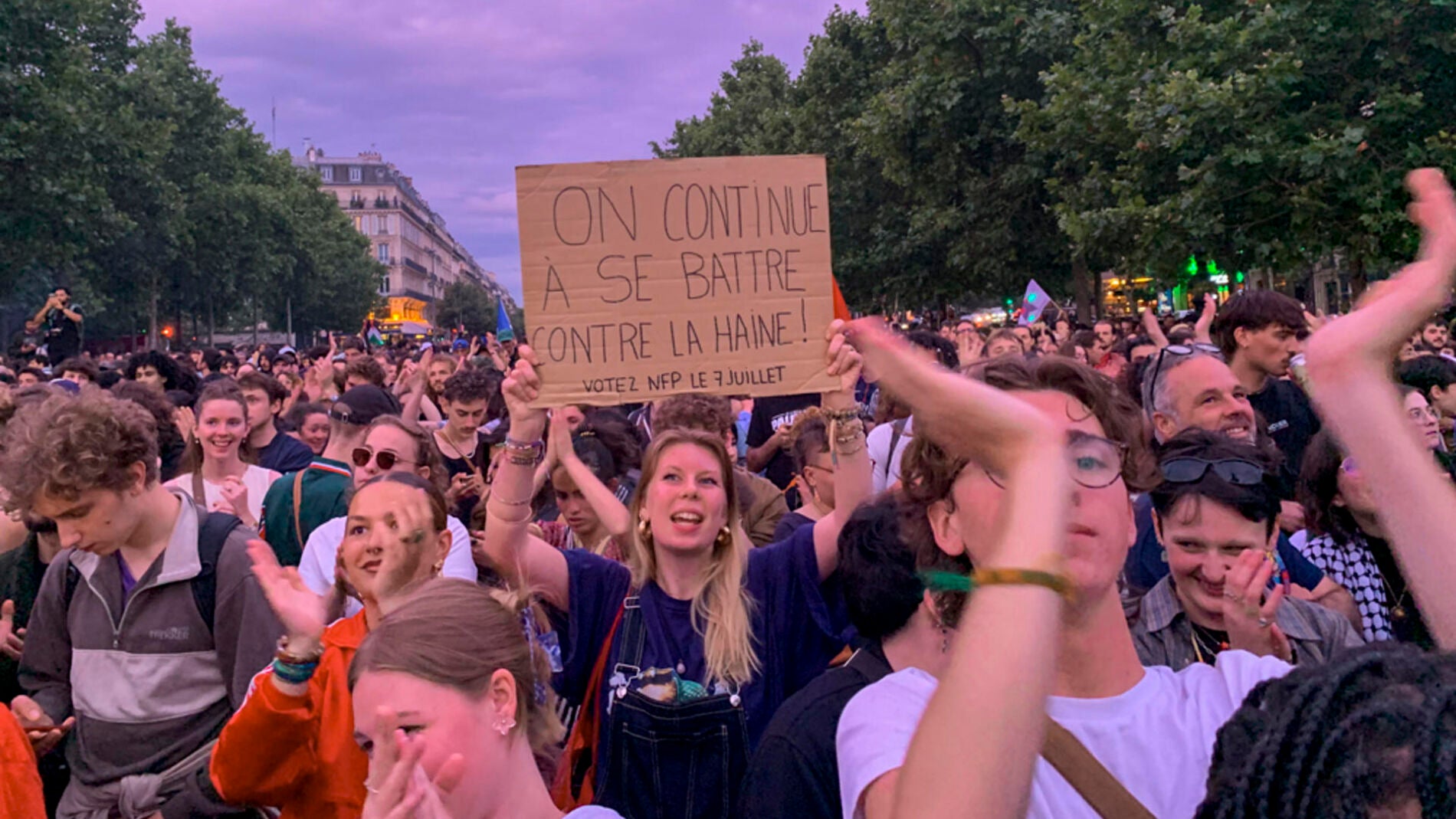 Tras conocerse los resultados de los comicios, miles de personas salieron a las principales plazas de las ciudades de toda Francia en apoyo al Nuevo Frente Popular y para mostrar su rechazo al partido de extrema derecha Agrupación Nacional.
