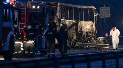 Los cuerpos de las víctimas han quedado "completamente calcinados", declaró el titular de esa cartera, Boyko Rashkov, en el lugar del siniestro, informa la emisora BTV. Las imágenes transmitidas por esa televisión pública mostraron el chasis del autobús completamente quemado.