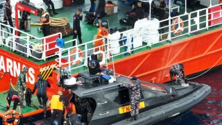 Los familiares de los desaparecidos acudieron al puerto para agradecer uno a uno el esfuerzo del equipo, que incluye a rescatistas de BASARNAS, efectivos de la Policía y al menos una decena de buceadores profesionales voluntarios.
