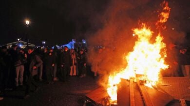 Las cargas no han tardado en llegar. Los manifestantes, en un primer momento, reunidos de forma pacífica con pancartas y megáfonos, han quemado después contenedores, escalado postes y montado barricadas para impedir el paso a los policías.