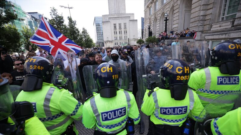 La violencia instigada por grupos de ultraderecha que estalló este fin de semana en ciudades británicas como Liverpool, Bristol, Hull y Manchester se ha saldado con el arresto de más de 90 personas mientras que varios agentes resultaron heridos tras ser atacados con piedras, latas de cerveza, botellas y sillas.