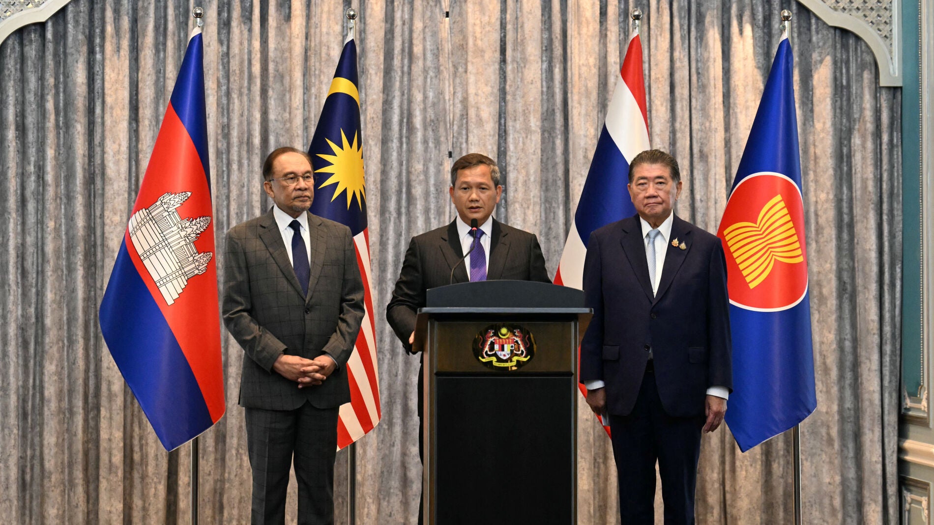 "Las dos partes han expresado su posición y voluntad de un alto el fuego inmediato e incondicional a partir de la medianoche", anunció el primer ministro malasio, Anwar Ibrahim, en una rueda de prensa tras la cumbre, en la que se presenta como la parte mediadora del conflicto siendo respaldado por representantes de Estados Unidos y China.