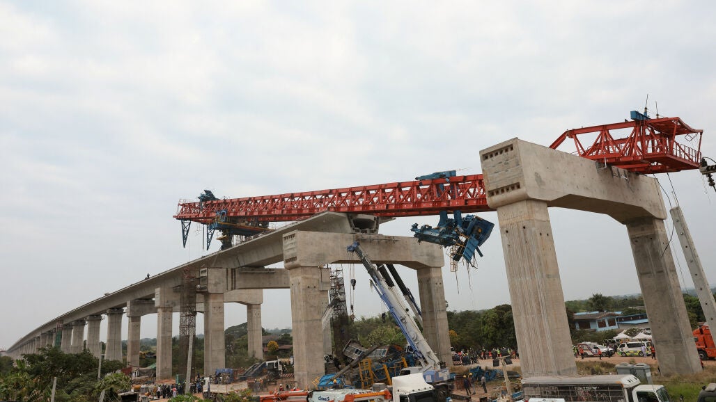 Según las autoridades, se desconocen los motivos que han provocado el colapso de la grúa, que en esos momentos sostenía un puente en construcción. Al caer sobre el tren, este descarriló y buena parte del mismo y de la zona se incendió. En ese momento se calcula que iban a bordo 171 personas, por lo que es probable que la cifra de muertos y heridos aumente con el paso de las horas.