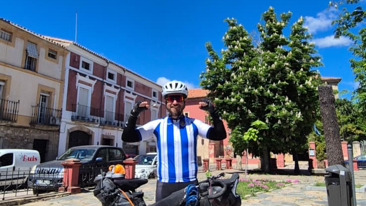 La final de la Copa del Rey es una de las fechas más importantes del fútbol español y cada temporada nos deja algunas de las imágenes más curiosas del año. Este sábado la jugarán el Atlético de Madrid y la Real Sociedad y hay un aficionado txuri urdin que ha decidido llegar a Sevilla desde San Sebastián en bicicleta.