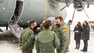 El avión militar aterrizó en el aeropuerto de la ciudad canadiense alrededor de las 12.00 hora local (15.30 GMT) en medio de una fuerte nevada. La tripulación del aparato, compuesta por 10 personas, fue recibida por la viceprimera ministra de la provincia de Terranova y Labrador, Siobhan Coady, y el embajador de España en Canadá, Alfredo Martínez Serrano.