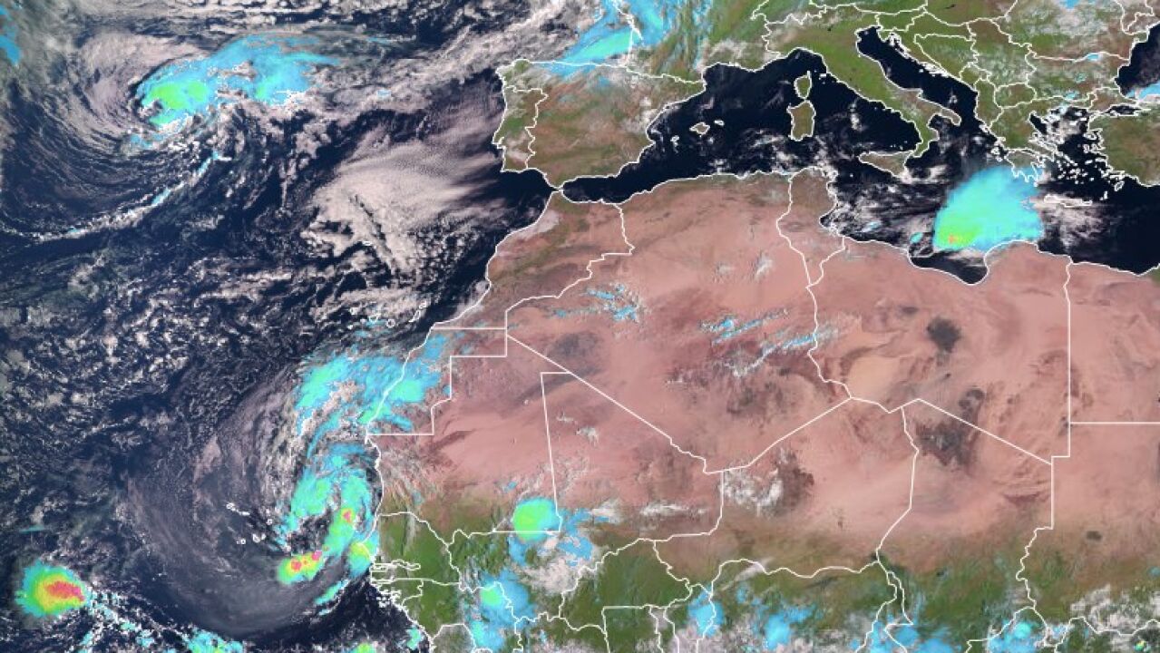 Esta tormenta presenta vientos sostenidos de 65 km/h y un mínimo de presión de 1002 mb, moviéndose en dirección norte-noroeste a 17 km/h hacia Canarias.