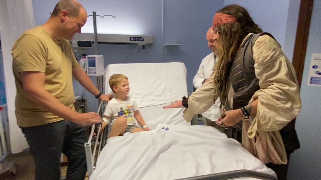 El actor estadounidense Johnny Depp ha vuelto a vestirse su traje pirata, como Jack Sparrow, y visitó a los niños ingresados en el Hospital Universitario Donostia de San Sebastián.