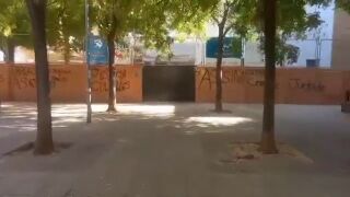 Tras el suicidio de Sandra Peña, la niña de 14 años que sufría acoso escolar, en su colegio las Irlandesas de Loreto han aparecido diferentes pintadas con lemas como "justicia", "culpables" o "asesinos".