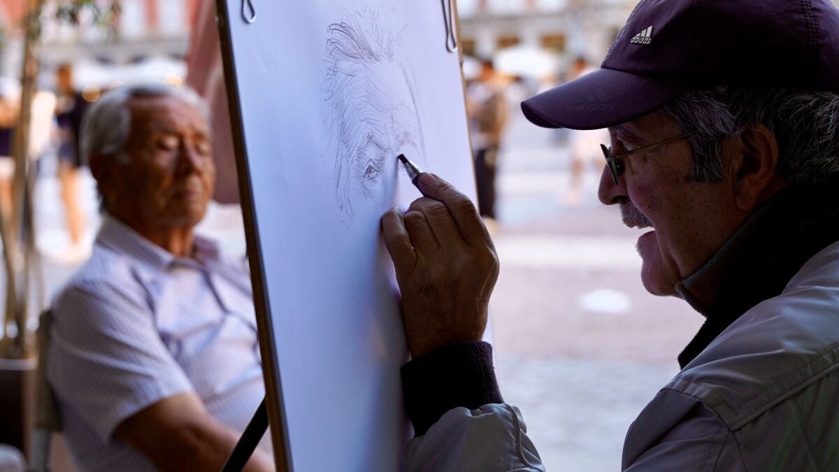 De esa vieja costumbre sigue viviendo un pequeño grupo de artistas en pleno centro de Madrid. En la Plaza Mayor, entre terrazas, turistas y prisas, todavía hay caricaturistas y retratistas que se ganan la vida mirando a quien se sienta delante y convirtiendo una cara en dibujo.
