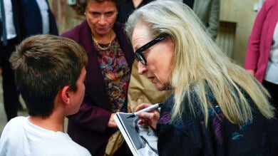 Meryl Streep ha revolucionado Oviedo. Si ya se convirtieron en virales sus pasos de baile al son de las gaitas o su aplaudido discurso tras la recogida del Premio Princesa de Asturias de las Artes, estos días se han publicado unas imágenes en las que se ve a la conocida actriz viviendo un momento muy especial con uno de sus mayores fans: Juan, un niño de 10 años.