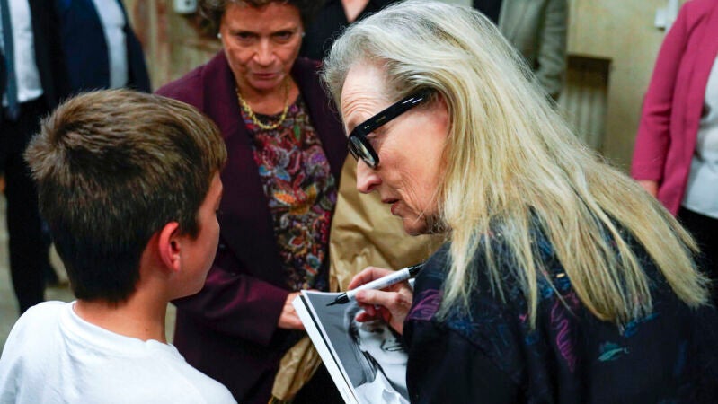 Llevando puesta una camiseta en la que se podía leer 'I love Meryl', el niño se acercó a la actriz para que esta le firmase una fotografía y poder hablar con ella, pero la emoción del momento se lo impidió: enseguida rompió a llorar ante una emocionada Meryl Streep que le consoló abrazándole. Después le firmó la fotografía, no sin antes protagonizar otro divertido momento cuando el rotulador que llevaba el niño no pintaba y la actriz, entre risas, tuvo que pedir otro prestado.