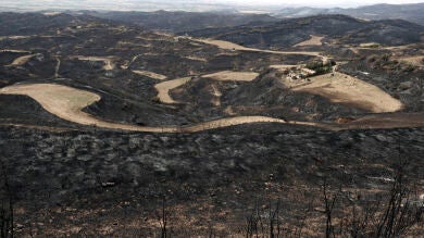 El fuego ha podido ser apagado en la provincia de Teruel. Tras obligar el desalojo de un camping, este miércoles parece que todo está bajo control, no sin antes haber quemado 20 kilómetros cuadrados de superficie. Esta vez, no solo ha resultado mal parada la masa forestal, ya que encinares y cultivos han sido arrasados de igual manera. Se sospecha que el origen estuviera en una cosechadora, que mientras estaba siendo utilizada soltó una chispa.