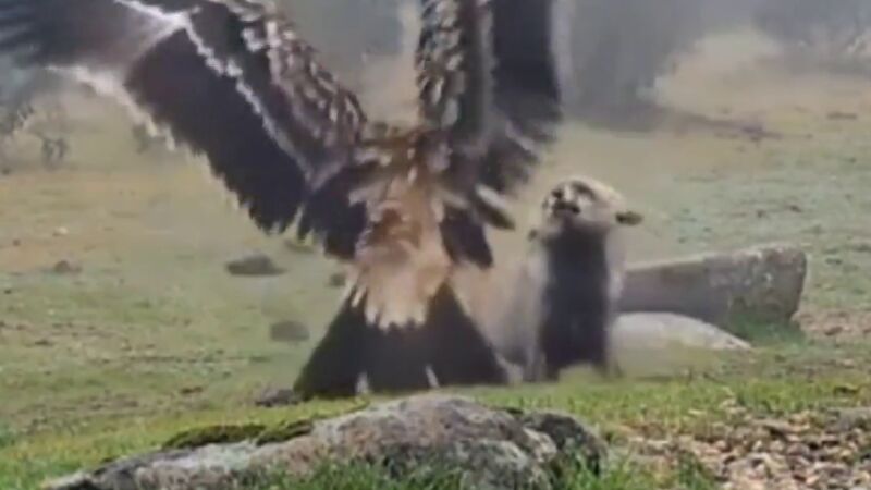 El vídeo comienza con el zorro dirigiéndose al águila en actitud altiva. Si bien, el ave no se deja amedrentar y le enseña todo su plumaje y envergadura, lo que provoca que el zorro dé un salto hacia atrás de pura impresión. Aun así, el zorro no se rinde y se acerca, pero el águila mantiene su actitud y vuelve a tirarse sobre él.