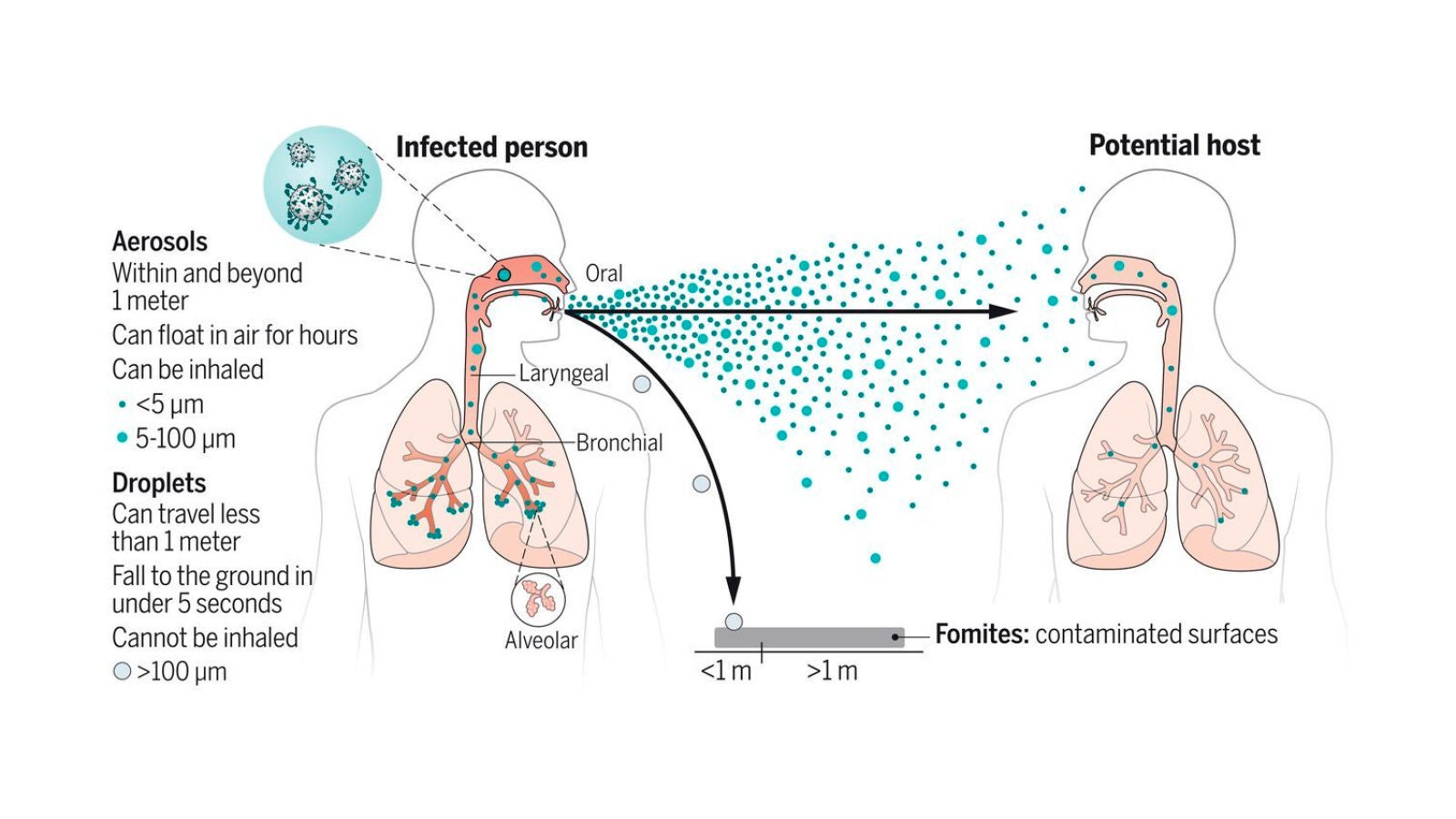 El fisiólogo pulmonar del Technion Josué Sznitman considera que "la mayoría de los aerosoles producidos por las actividades respiratorias son de menos de 5 µm, lo que les permite viajar hasta las regiones bronquiolares y alveolares y depositarse allí. Además, los estudios han revelado que los virus se enriquecen más en los aerosoles de menos de 5 µm".