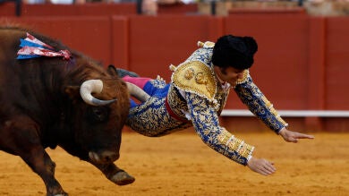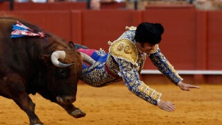El torero sevillano fue alcanzado por el cuarto toro de la tarde, un ejemplar marcado con el hierro de Hermanos García Jiménez llamado 'Clandestino' que le derribó en el transcurso del primer tercio corneándole en el suelo. La lidia del animal quedó en manos de Borja Jiménez, segundo espada del cartel.