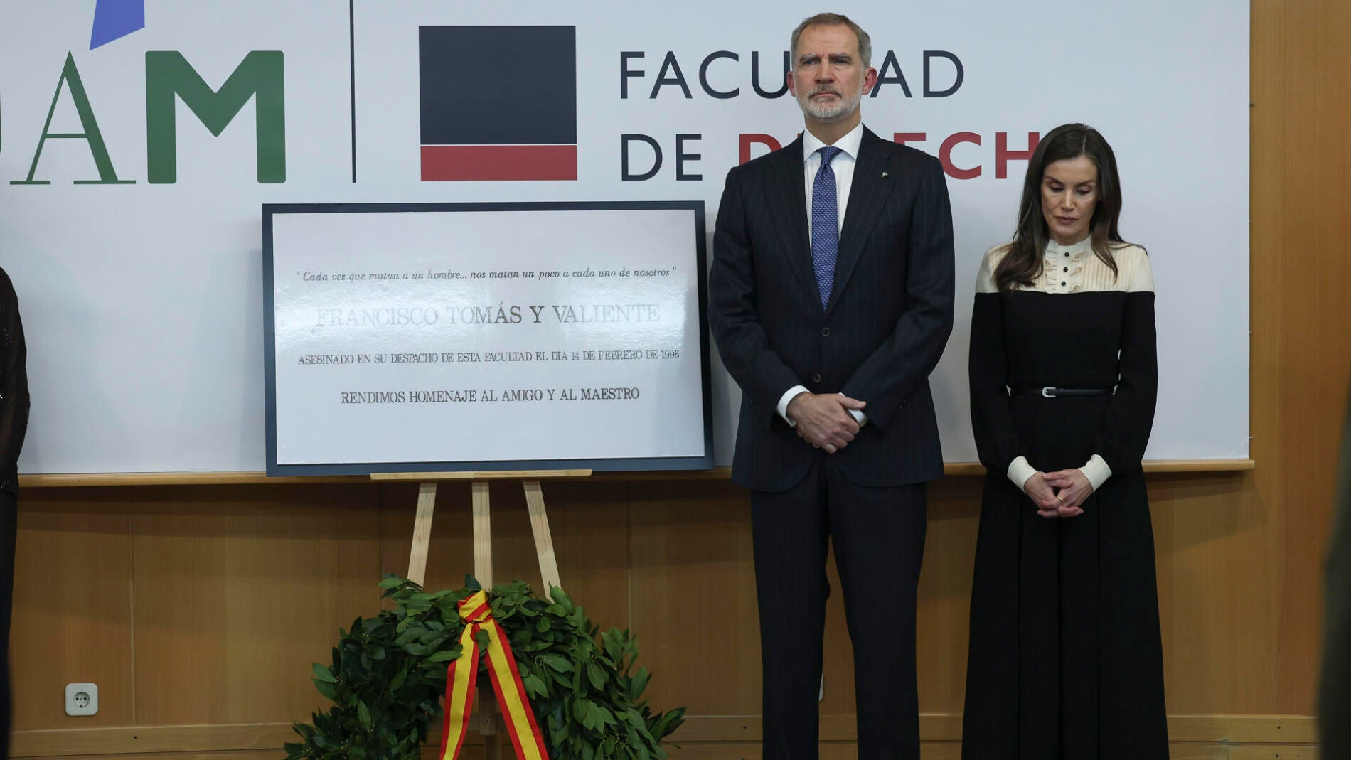 "El asesinato de un profesor en su despacho de la facultad causó una enorme conmoción", ha subrayado el monarca, quien fue alumno de Tomás y Valiente durante su paso por la UAM, reconociendo que aquellos "eran tiempos muy duros, donde la sociedad se enfrentaba con cruda realidad a la barbarie en forma de goteo de atentados terroristas".