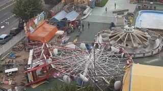 En Albacete y en Gandía se registraron este pasado domingo fuertes rachas de viento provocadas por la ola de calor que dejaron a su paso impactantes imágenes. En Albacete una tormenta de arena azotó varias zonas de la ciudad. En Gandía, el más impactante, el derribo de una noria de feria en la playa. Ambos incidentes fueron provocados por diversos reventones cálidos que han ocasionado bruscos ascensos térmicos con vientos racheados fuertes.
