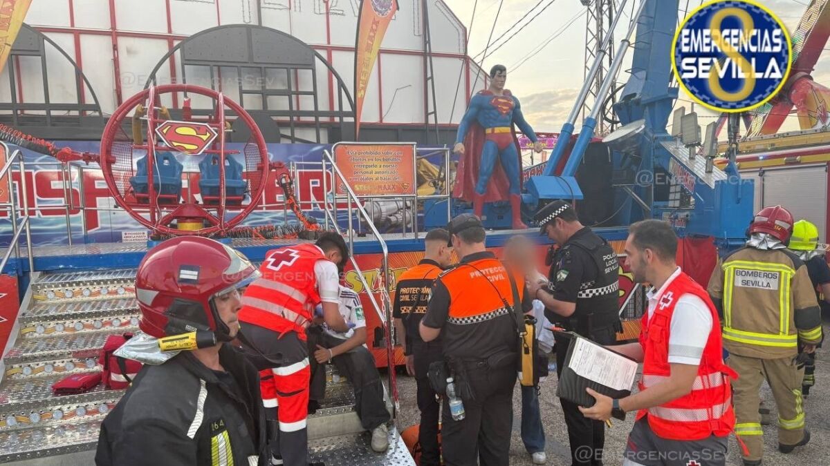 Según el Ayuntamiento de Sevilla en redes sociales, dos de los heridos fueron atendidos en el lugar donde se encuentra la atracción Steel Max, que ha quedado precintada por los bomberos tras el accidente ocurrido durante su funcionamiento a las 20:20 horas.