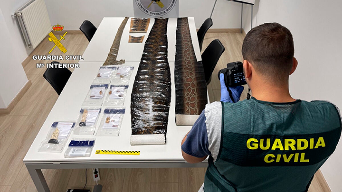 La Guardia Civil, en el marco de la operación RIB TOOL, ha recuperado 100 piezas de marfil, pieles de serpientes y lagartos que iban a ser vendidos ilegalmente en el País Vasco.