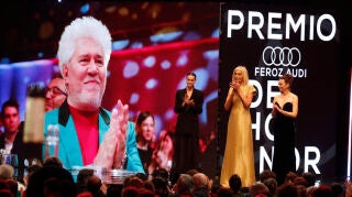 Las diversas fuentes consultadas por el periódico y presentes en la ceremonia afirman que llamó la atención el comportamiento del productor acusado con Almodóvar para darle la enhorabuena por su premio de honor: "fue muy efusivo". "Le dio un abrazo, dos besos, le dijo que le quería, y el propio Almodóvar estaba extrañado del comportamiento de una persona a la que no parecía conocer mucho", han asegurado.