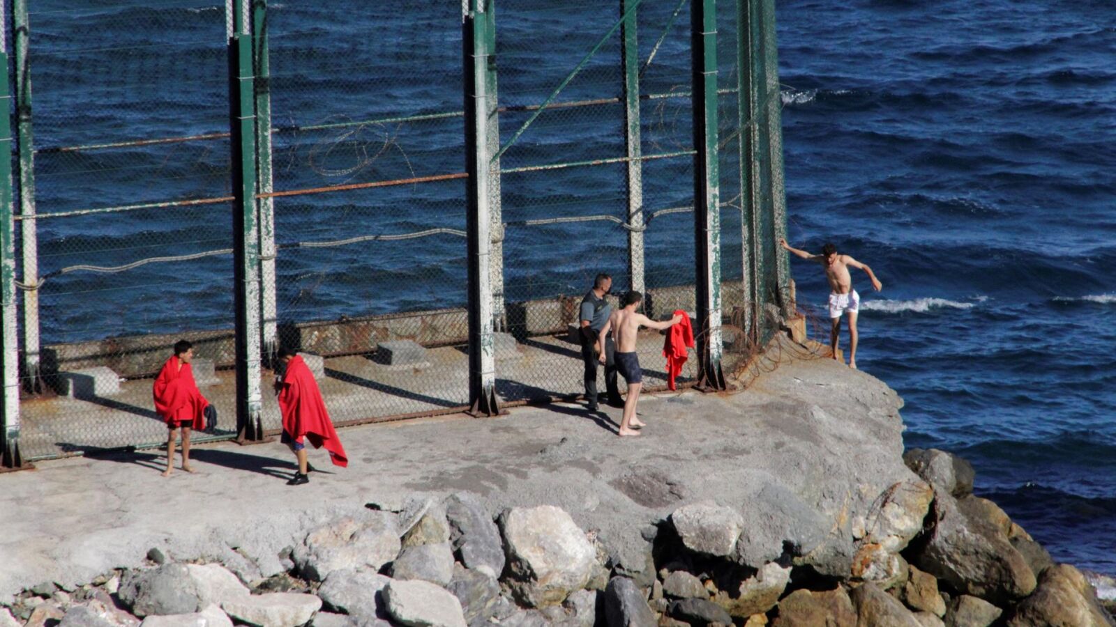 La oleada migratoria comenzó al filo de las 2.00 h de la madrugada de este lunes por el espigón norte del perímetro fronterizo y durante la noche y todo el día se ha extendido también al Tarajal, en el extremo sur, por donde los marroquíes, en su mayoría hombres jóvenes , pero también mujeres e incluso niños, superan la barrera fronteriza sin ningún control.